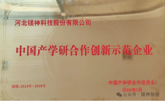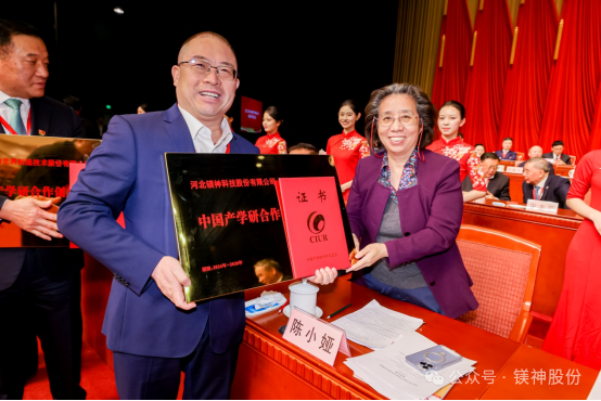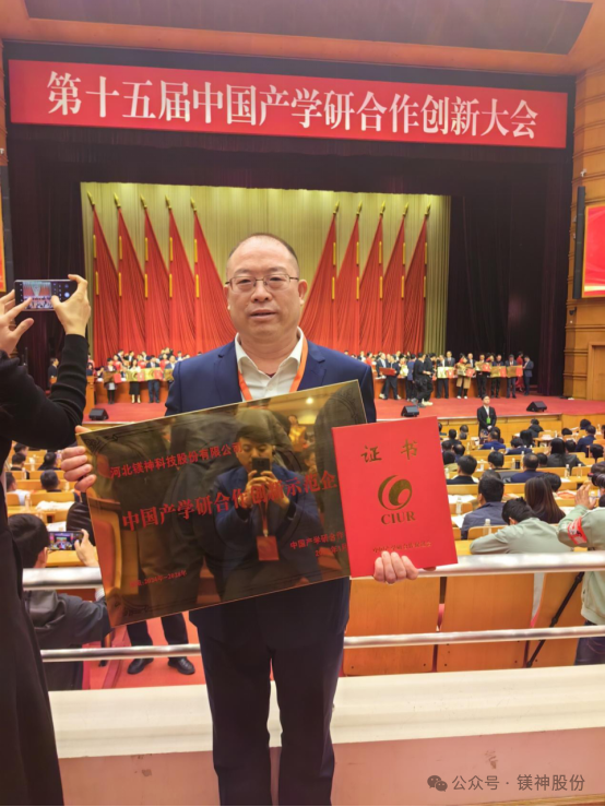 此次盛會上,河北鎂神科技股份有限公司榮獲“2023中國產學研合作促進會產學研合作創新示范企業獎”。河北鎂神科技股份有限公司董事長孫文,公司研發總監白雪梅、公司市場部經理馬海芯等參加了此次大會并領獎。這是河北鎂神科技股份有限公司首次榮獲“中國產學研合作促進會產學研合作創新示范企業獎”殊榮。